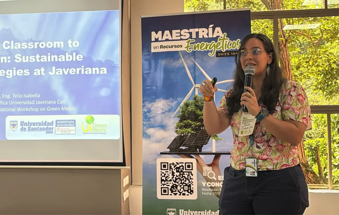 Isabella Tello, profesional de Gestión Ambiental de la Javeriana Cali, estuvo presente en el 8° Workshop GreenMetric Colombia, que se realizó los días 8, 9 y 10 de mayo en la Universidad de Santander y reunió a expertos en sostenibilidad ambiental universitaria.