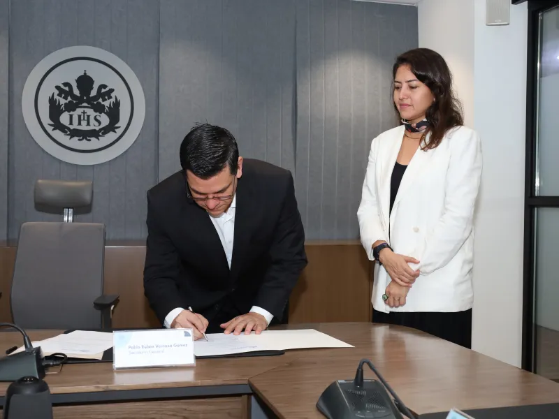 Pablo Rubén Vernaza, secretario general y Sergio Chacón, director de la maestría en Comunicación y Creación Interactiva.
