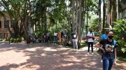 Desde las 6:00 a.m. los estudiantes realizaron la fila afuera de la universidad y uno a uno fueron ingresando al campus para cumplir con los protocolos. Para las pruebas se habilitaron los edificios de El Samán y El Lago, los cuales contaron con la presencia de los biogestores que se encargaron de brindar apoyo logístico.