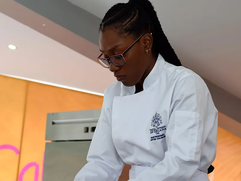 "Desde pequeña me apasiona la cocina gracias a mi abuelo, quien me enseñaba y me impulsaba a cocinar y por él fue que decidí estudiar Gastronomía, así el resto de mi familia en su momento quiso que yo estudiara otra carrera, pero finalmente me apoyaron en lo que realmente quería ser como profesional. Gracias a la beca Santiago, municipio de Cali, ingresé a estudiar en la Javeriana Cali porque me cubre el 100% la matrícula. Estoy en quinto semestre y lo que más me ha gustado de la carrera es aprender sobre cocinas del mundo, el conocimiento sobre lo cultural alrededor de estas te da el impulso de querer salir a vivir las cocinas desde sus raíces".